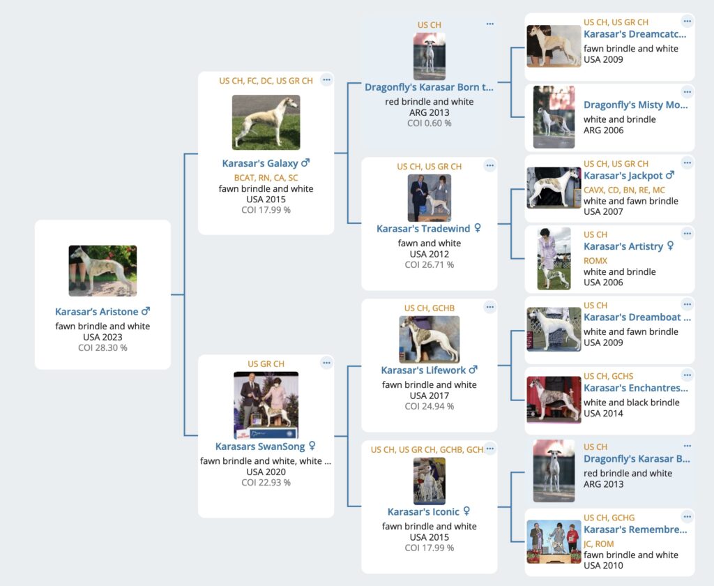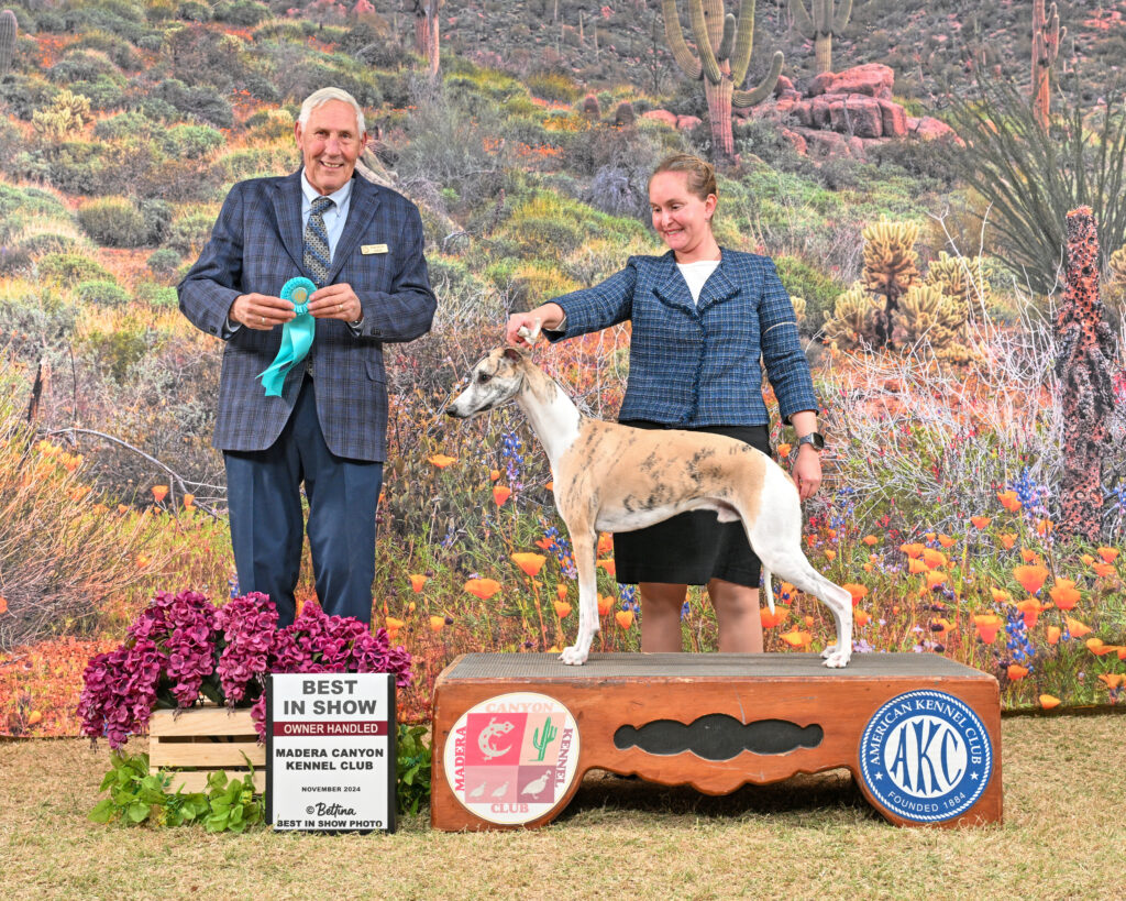 Duke (DOB: 9/28/2023) is our whippet out of BIS, RBIS GCHS CH Karasar’s Swansong (Sissee) and GCH DC Karasar’s Galaxy BCAT RN CA SC (Marz). Duke was bred by Kerrie Kuper, Neil Barthelette, Caroline Cope, and Karen Mlynar of Karasar Kennels.